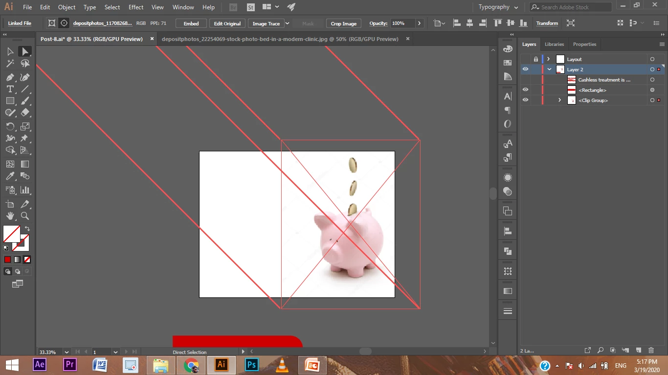 Illustrator GPU issue: Unusual red lines while working in Illustrator CC 2018 on Windows machine.
