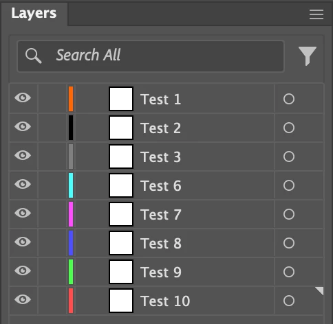 In the example below, I want to change all the Test layers to Light Blue (names of layers don't matter).