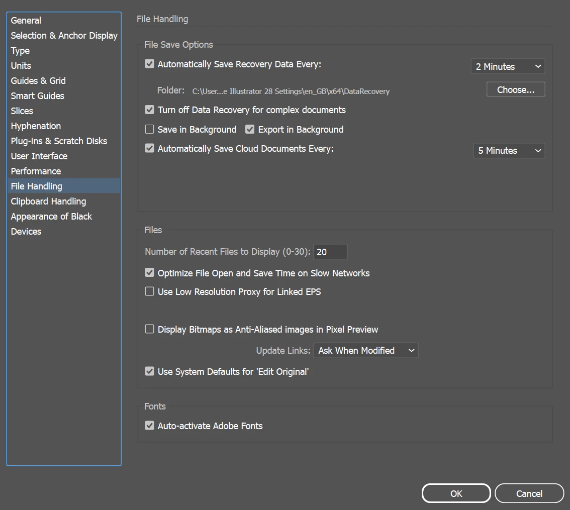 These are the Illustrator file-handling preferences i have set