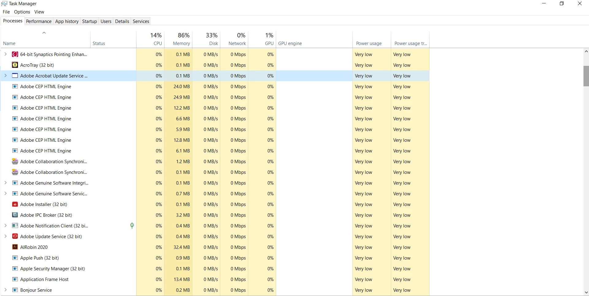 Below you can see the task manager status: