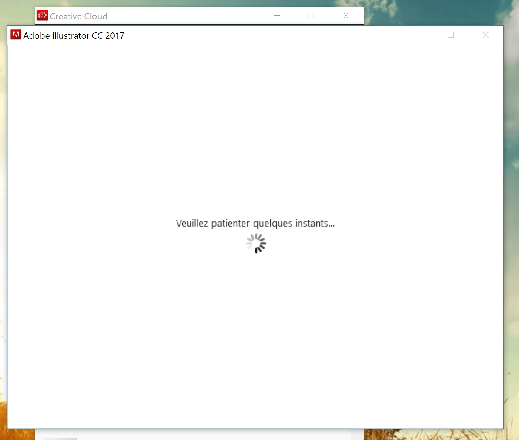 Impossible d'accéder à l'application après l'installation test (je précise que les autres applications Adobe fonctionnent très bien). La page reste bloquée la-dessus: