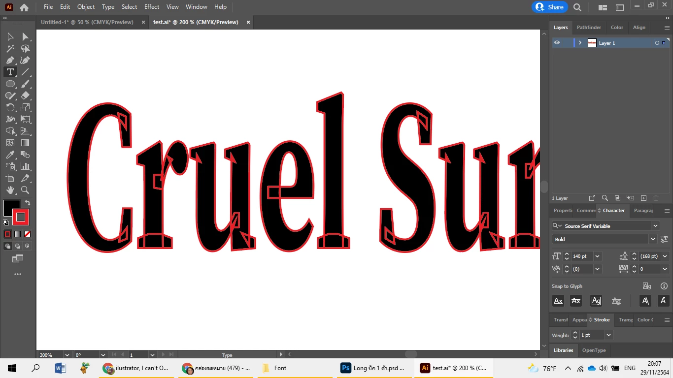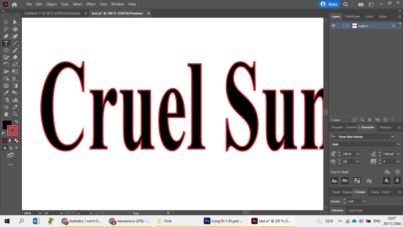 ilustrator, I can't Outline Stroke Text What happen?
