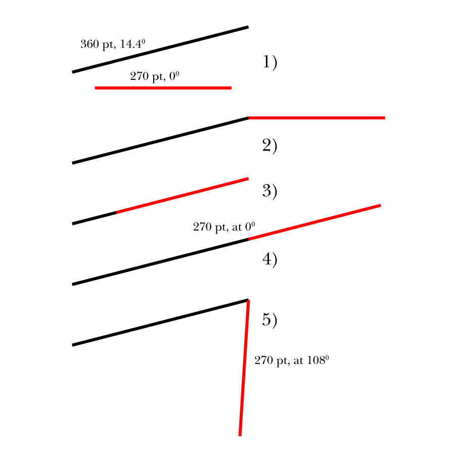 0) Start by mesauring the original length along with the distance from the start of the original line to the end of the following line instead of the digitally established angle;