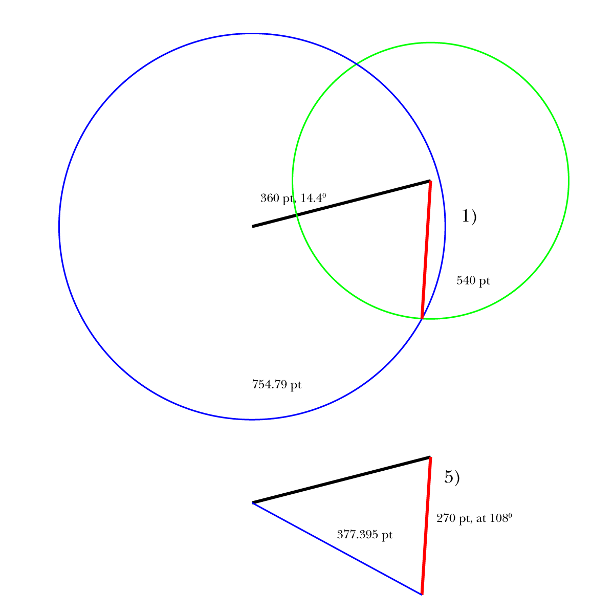 The distance for the blue circle is shown as the blue line in a copy of step 5) from the previous post.