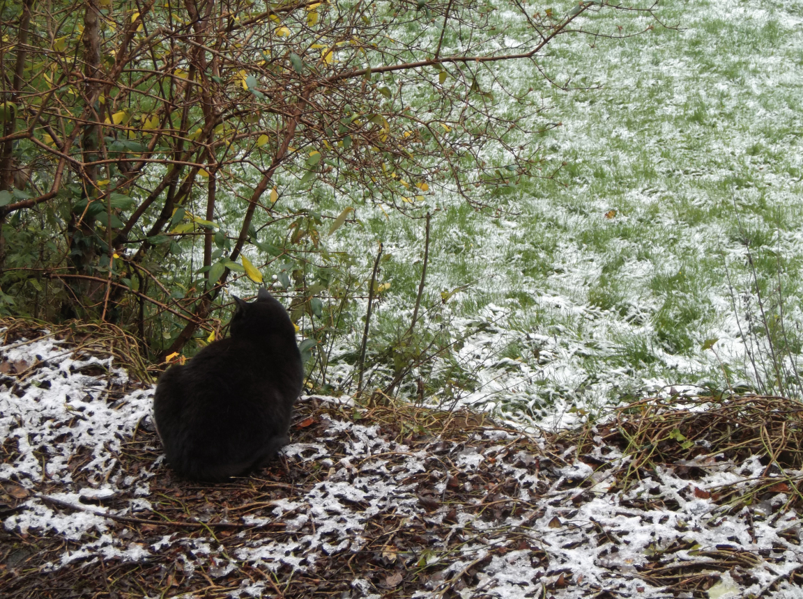 This autumn they all suddenly withered, so Bella was lying on a rather thin brown carpet when it began to be here a good month ago.