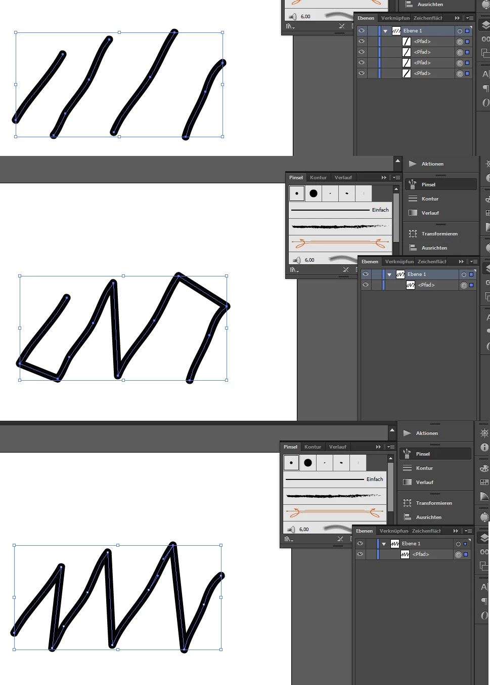 1) You see the original scribble, 4 brush strokes, every stroke beginning in the bottom and directed to top-right.