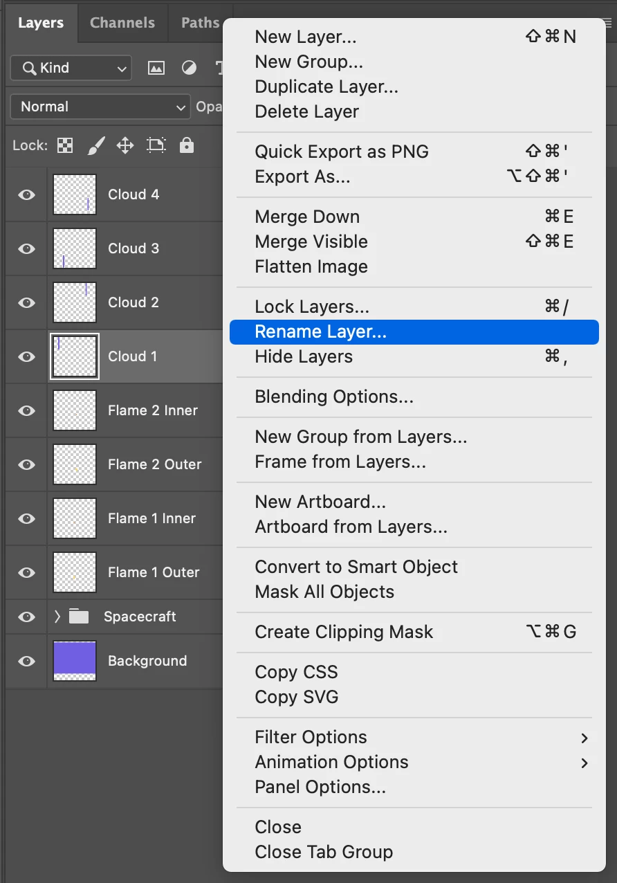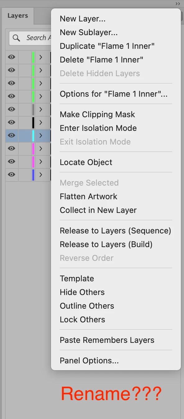 Please, make the "Rename" option available in the options menu for layers (shapes/objects) same way as it's done in Photoshop and/or After Effects.