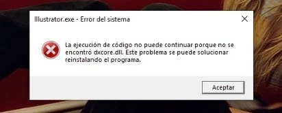 Hola, cuando quiero abrir Illustrator me salta este cartel que dice "La ejecucion de codigo no puede continuar porque no se encontro dxcore.dll". Adjunto imagen.