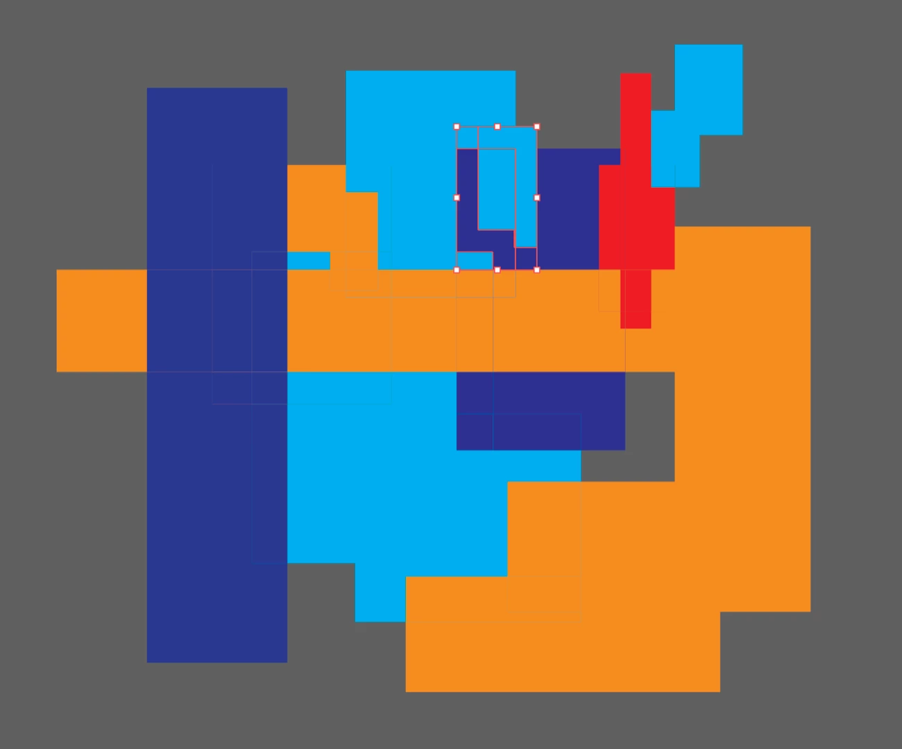 I moved part of the blue area at the top to show the navy object underneath has not been deleted.