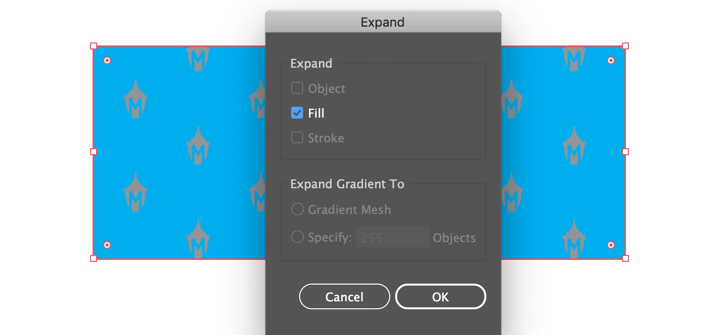 Forgive me, but I'm a relative novice when it comes to Illustrator. I'm using Illustrator CC and trying to create an object by subtracting the pattern elements of another object that I filled with the swatch tool. The end goal is to have the pattern elements subtracted from the background object.