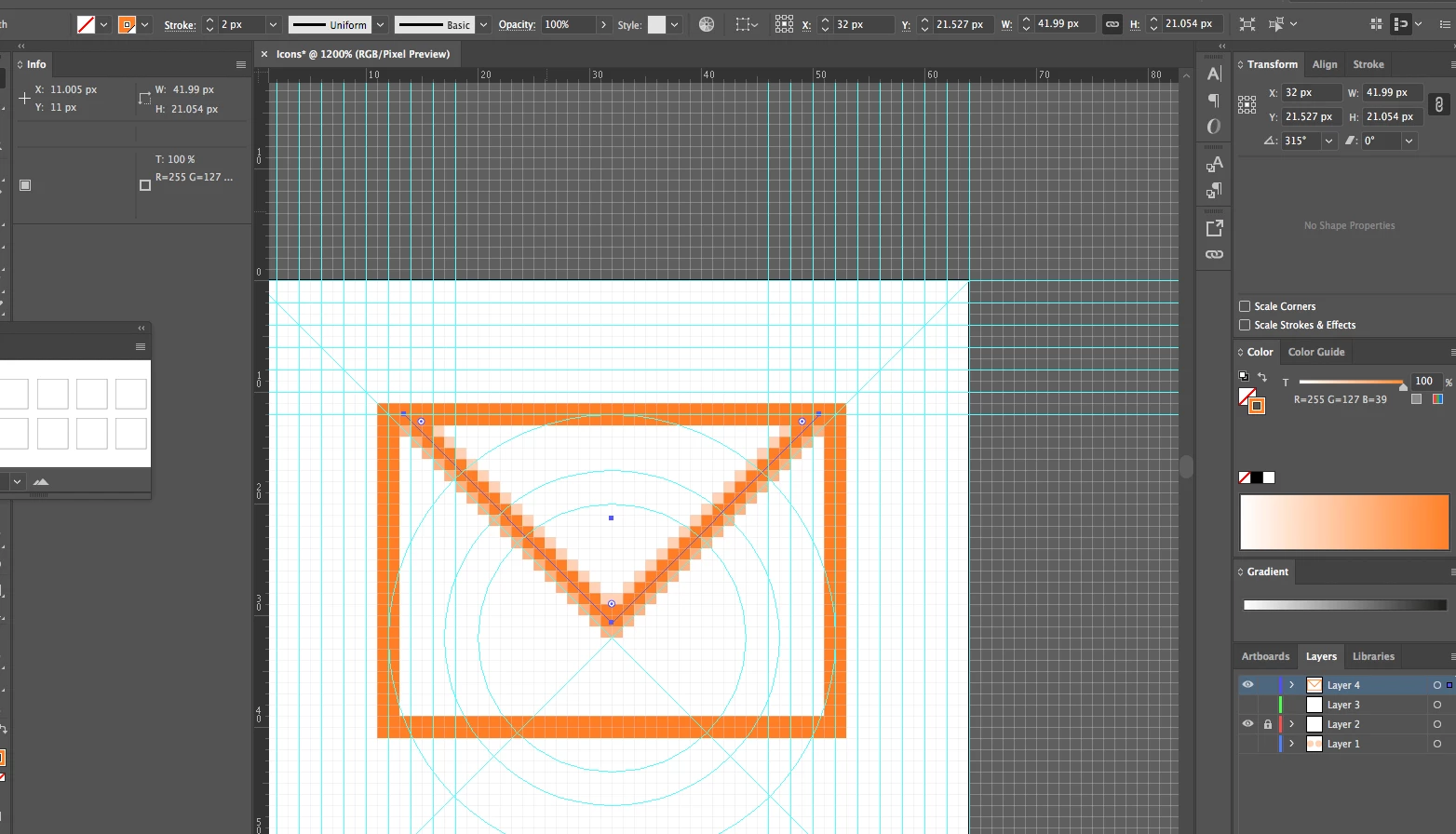 Hi I am trying to design a pixel perfect envelope icon. That actually sounds pretty easy but Illustrator will not let me do it.