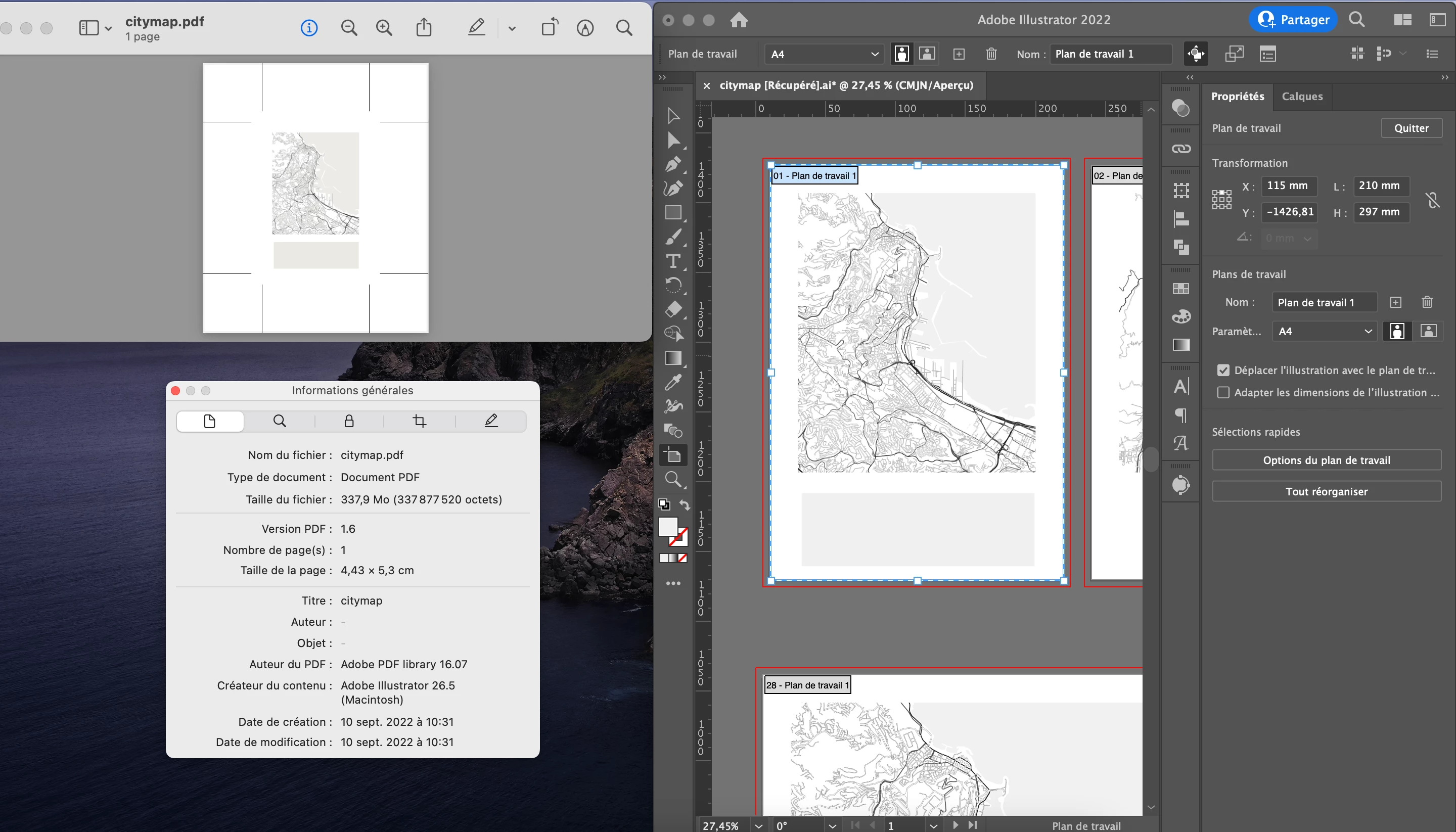 1 / Lorsque j'enregistre mon plan de travail format A4 en PDF, j'obtiens une image de 4,43 × 5,3 cm