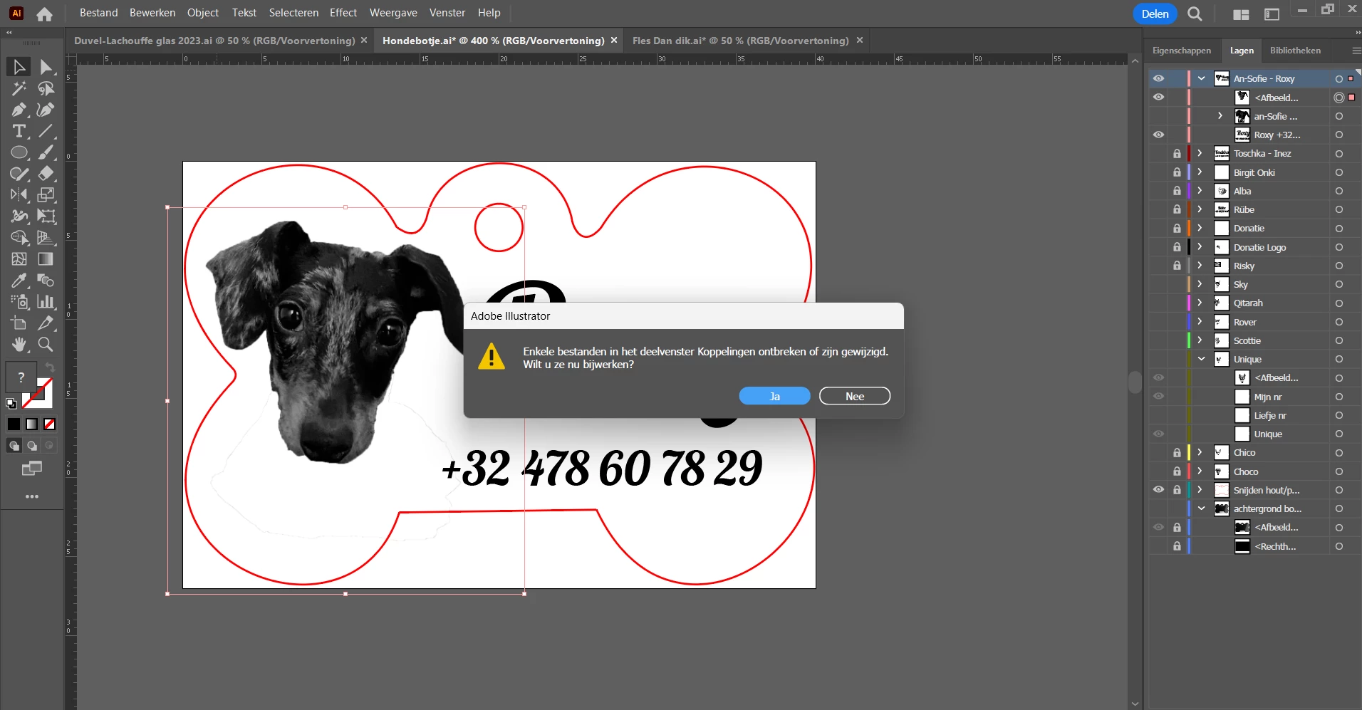 "Some files in the Links panel are missing or have been modified. Do you want to update them now?"