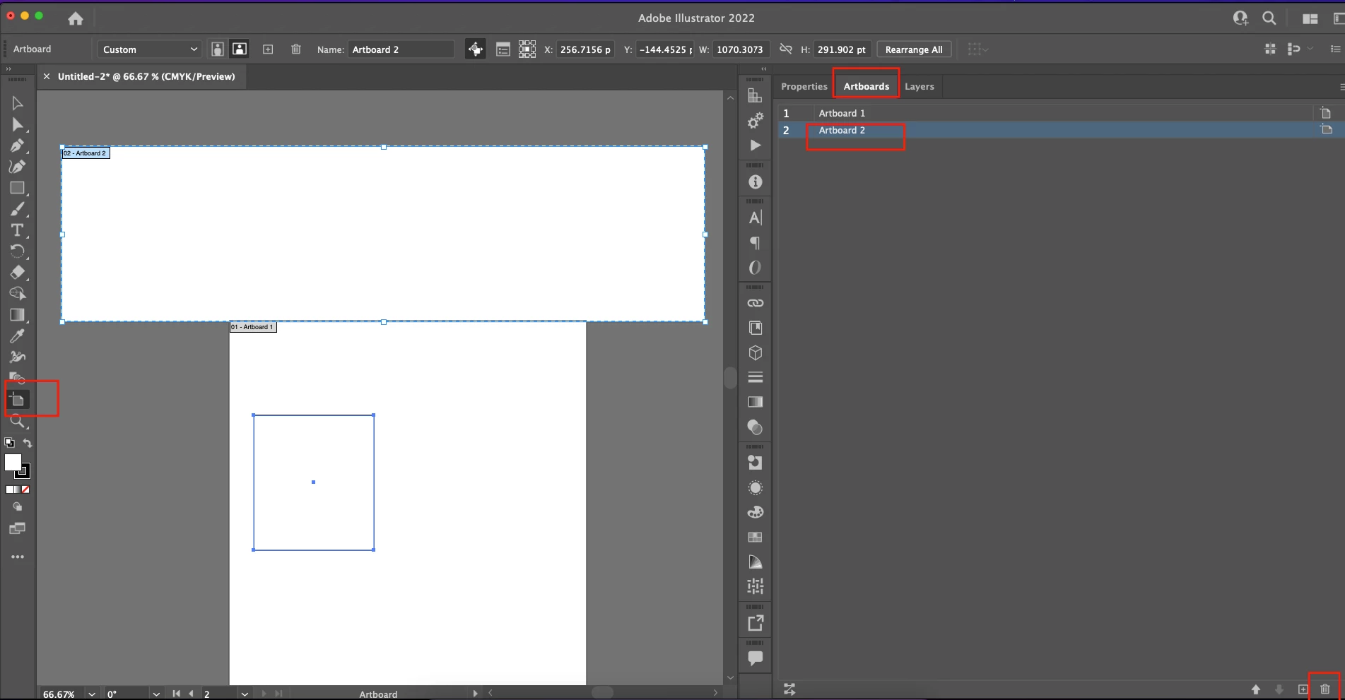I seem to have end-up having multiple, unneeded Artboards in one file. How do I remove the ones without the artwork?