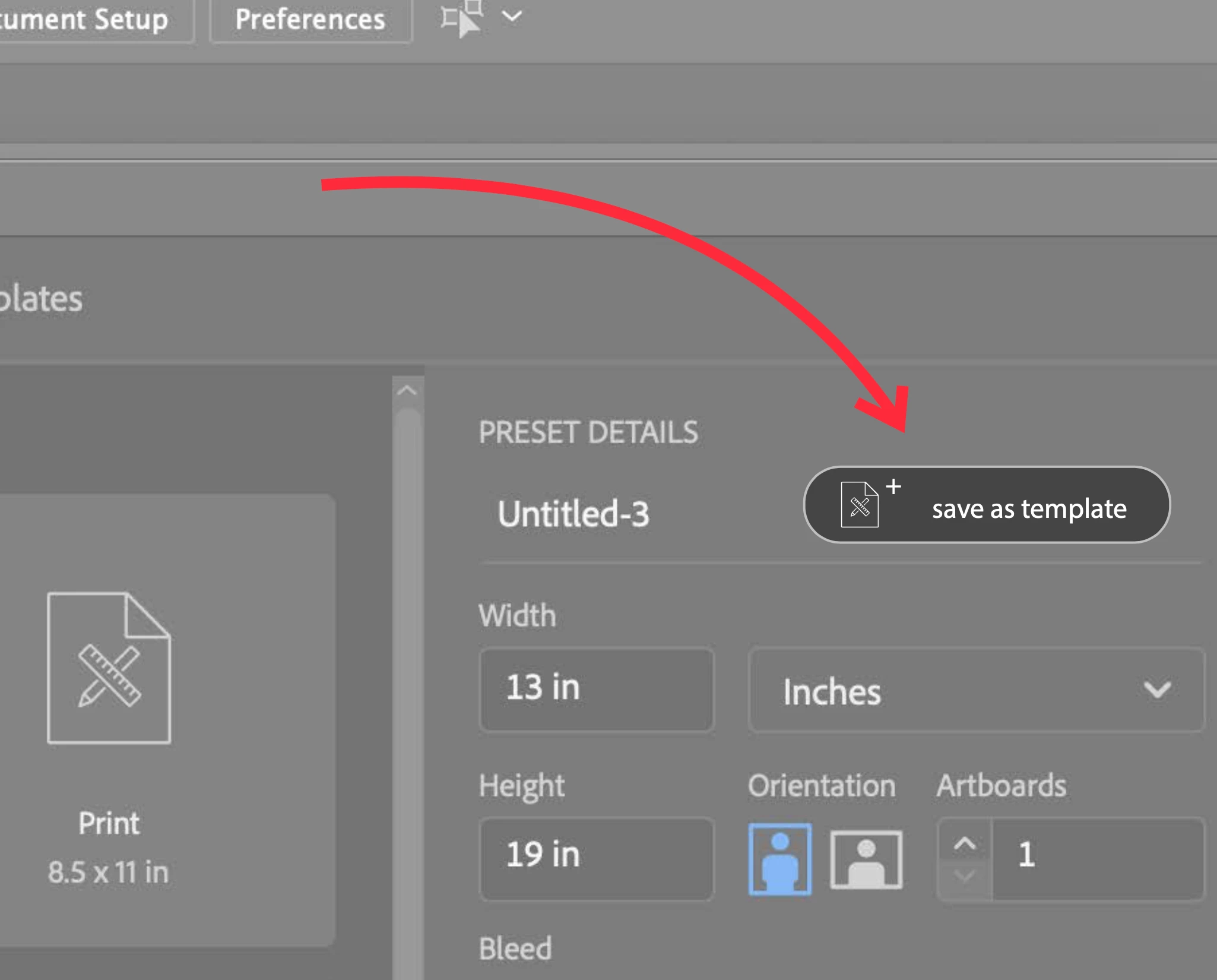 I saw a forum about saving custom document sizes as templates. I've never been one to save custom ones, but I have always wanted to—to avoid searching through pre-made templates or my old junky ones. BUT, on said forum the only conclusions were: digging around through the native adobe files and plopping in your desired .ai into the templates folder or saving your document at any time as a .ait ( AI Template I presume). So, sure, maybe the .AIT is A solution, but I wanted to present an extremely simple easy user friendly button that would've had me making my own as a freshman graphic designer right away (i'm graduating in a few weeks). So, here's my proposal. [refer to img]