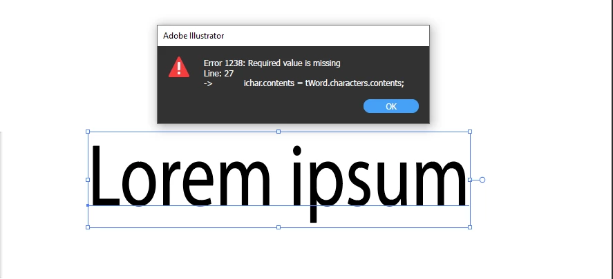 I tried to run a script which breaks up text to become individual object, but still live text, and I get this following error
