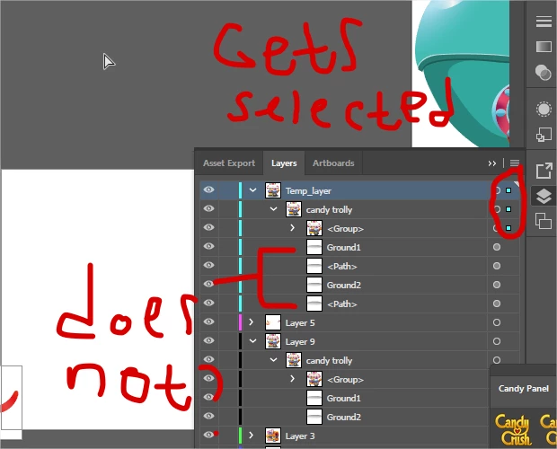 This works for some of my assets, but not all. On the ones that the script does not work on it only gives the first child of the layer and stop there. The selection is applied to a part of the object but not everything. See attached picture for explanation ->