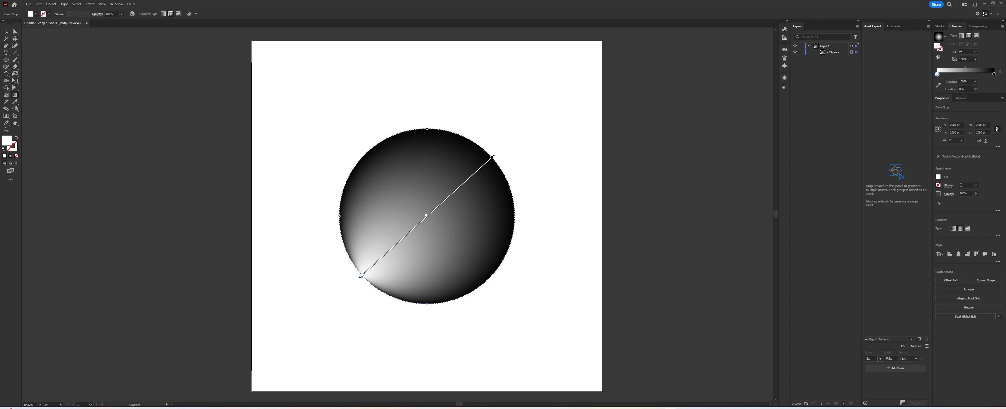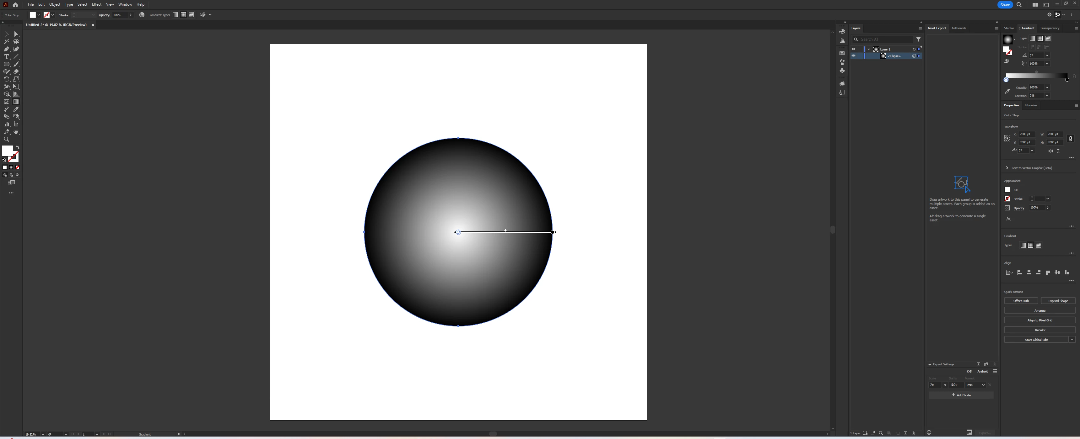 I will simply use a circle as an example, but in the screenshot below you can see I have set the fill of my circle shape to be a radial gradient.