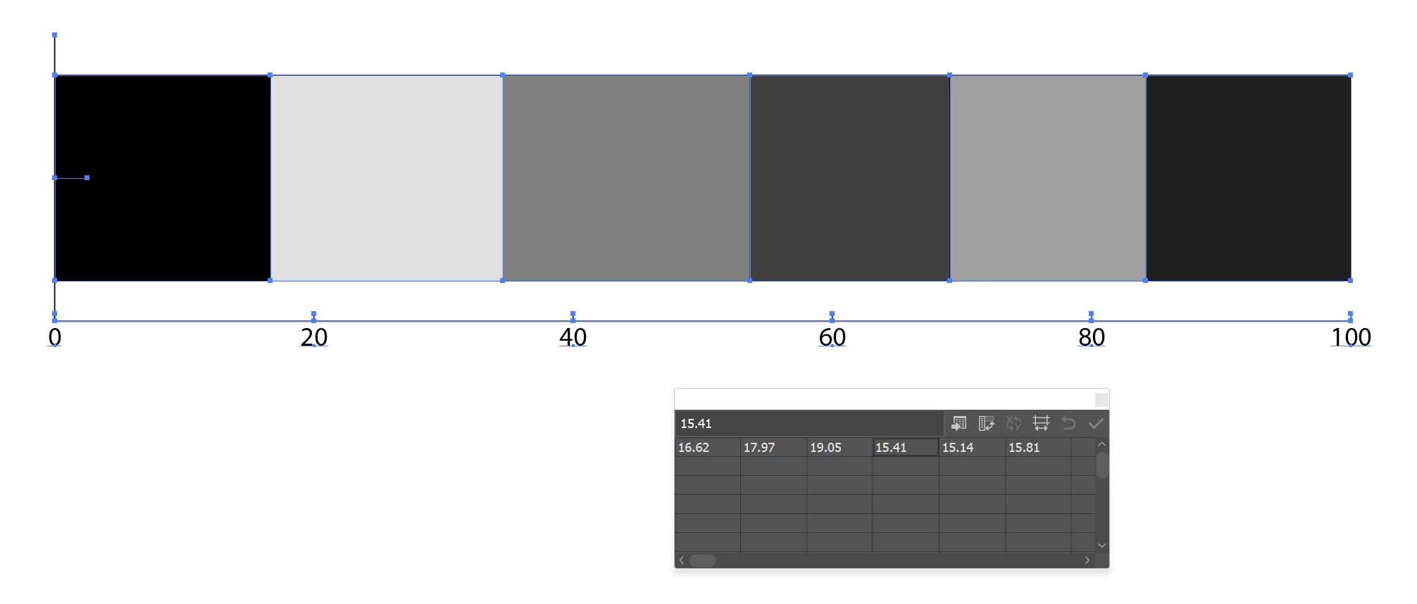 I would like to arrive at something like the bottom part of the following image, where I can retain the vertical segments AND STILL HAVE THEM RESPONSIVE TO THE DATA so that I can modify the data (perhaps many times) and get different separation between the vertical bars (sorry but that top part of the graphic should not be there). The bar graph can still be there, but I only want/need to see the vertical bars.