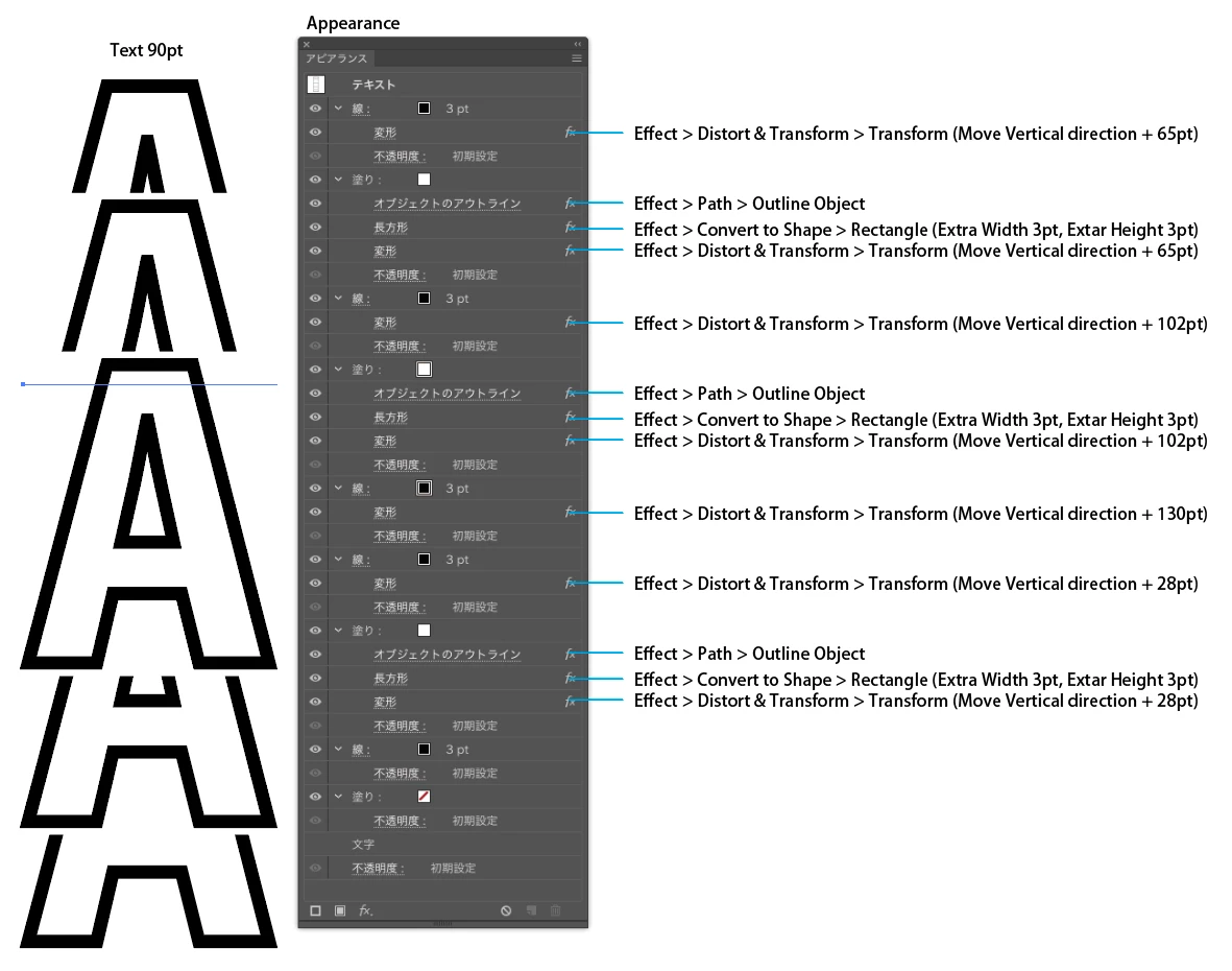 Enclosed find the Appearance panel in English, I have started just with the type. I have not used that selected horizontal line.