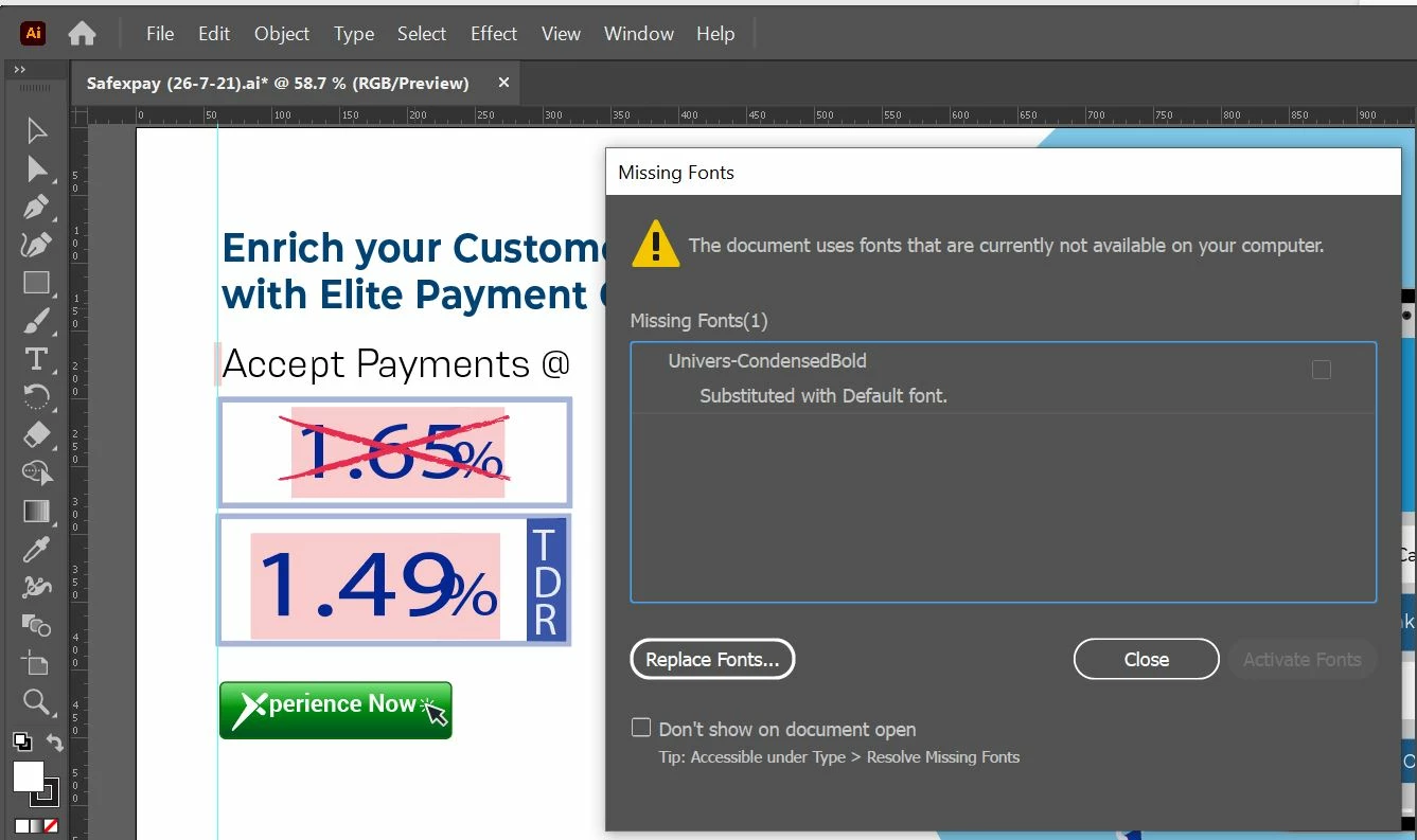 We have adobe Creative Cloud licance. pls help with us Univers-CondensedBold Missing fonts error.