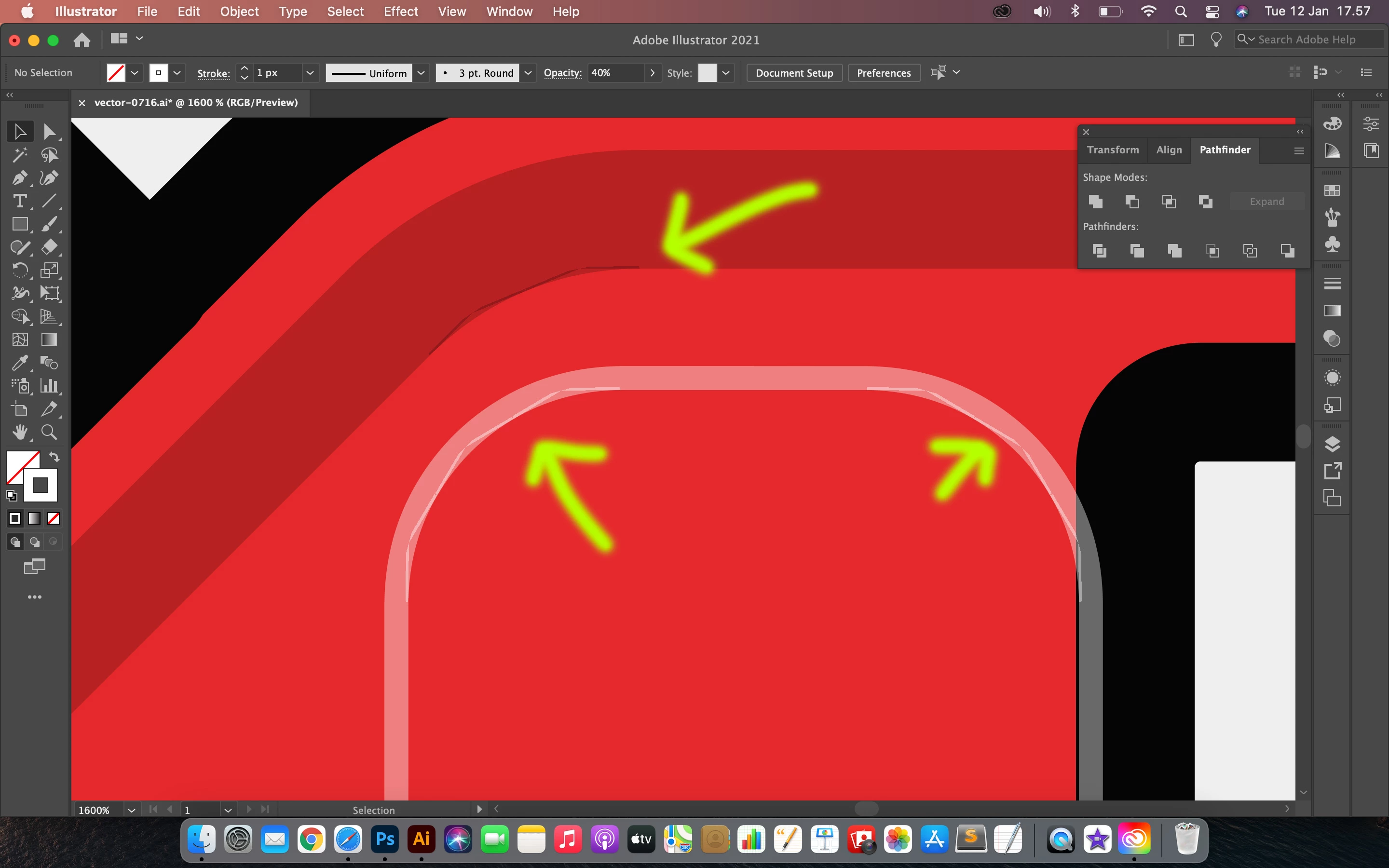 Weird line in rounded corner for Adobe Illustrator 25.1