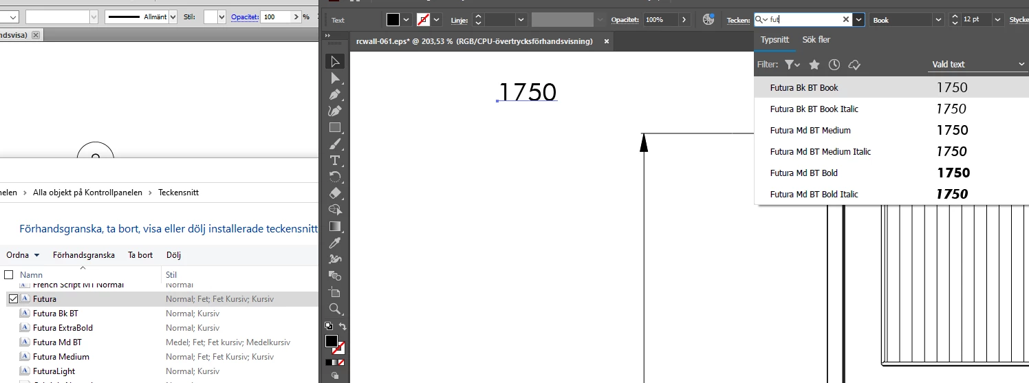 As you can see below, the font family Futura is installed on my computer, but when I search in Illustrator I only get Futura Bk and Futura Md. NOT the same font! Where are my fonts???