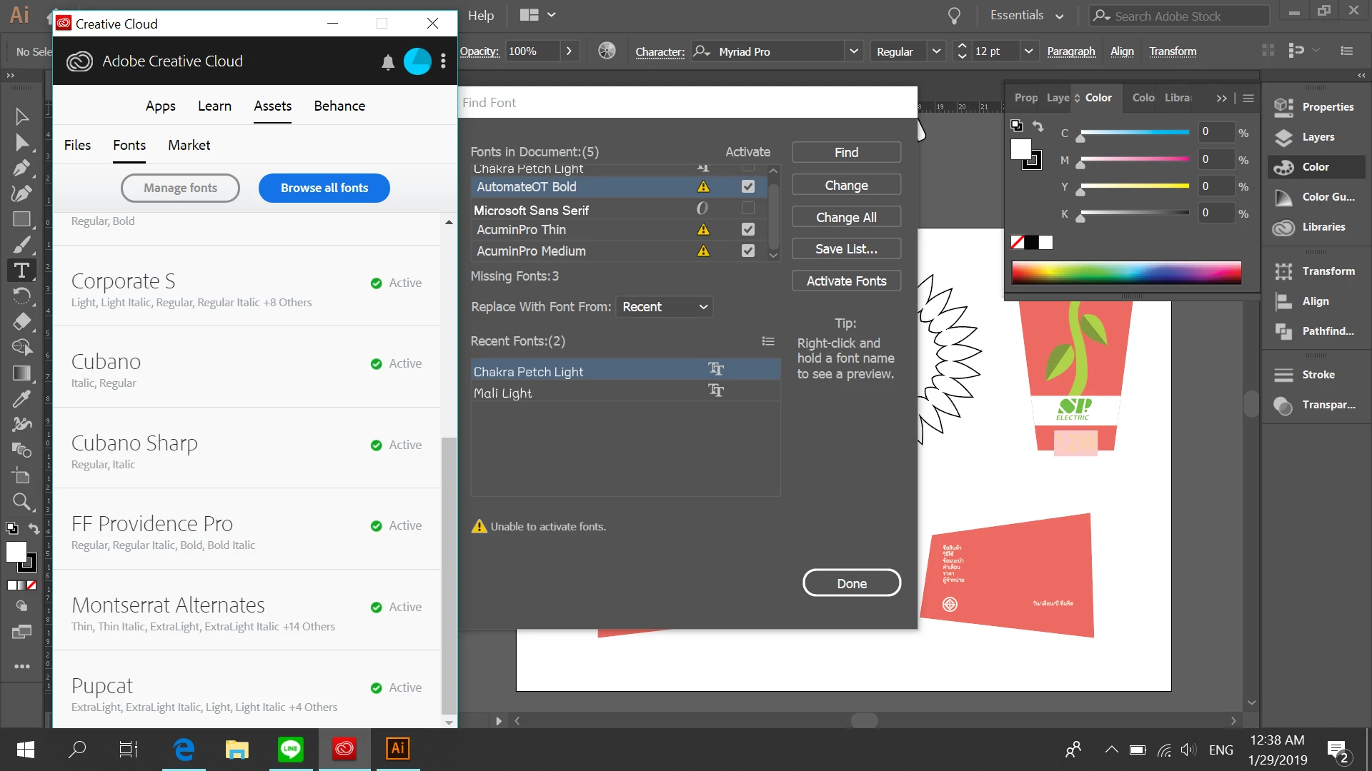 Why I can't activated my adobe font after re-open a file?