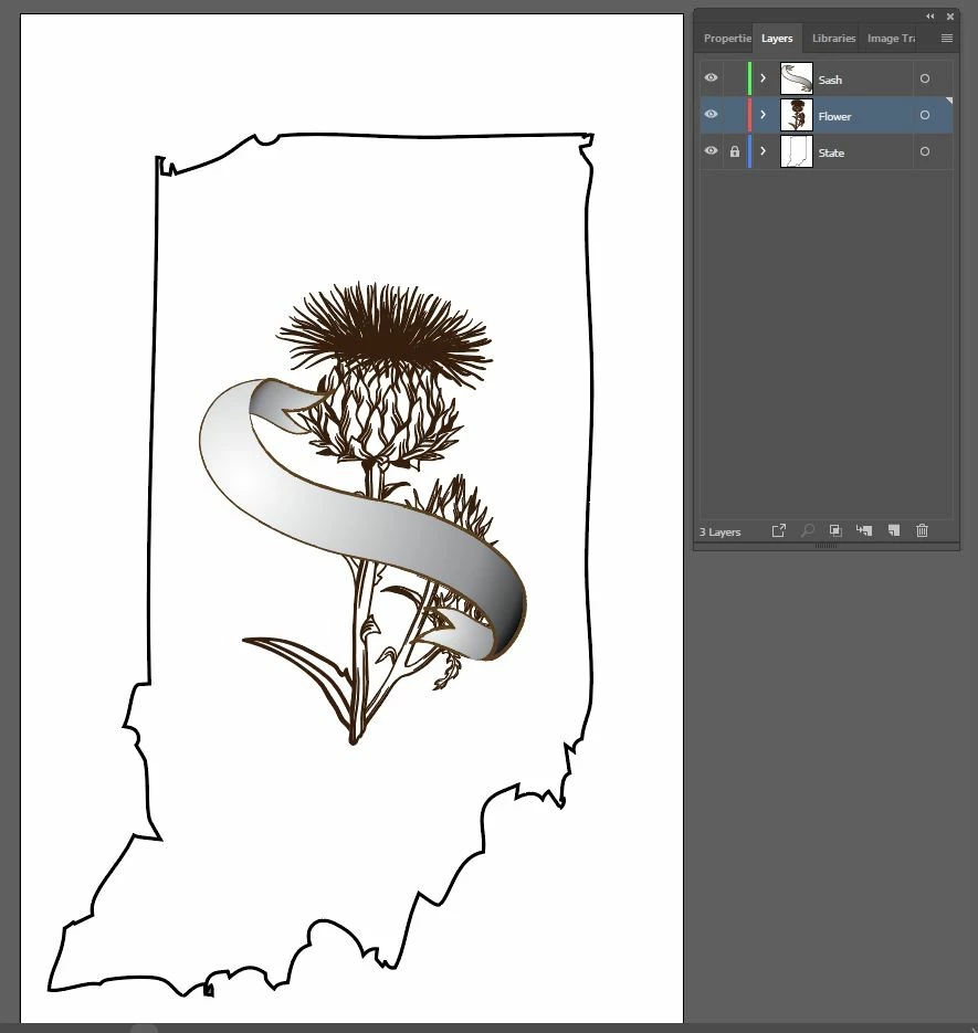 Below you will see a screen shot of my Illustrator project.  What I want to do is make that sash look like it is wrapped around the thistle plant.  So those edges should be behind the plant while the middle section is on top.