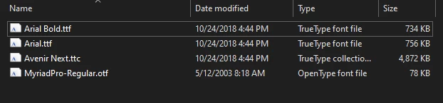 Avenir Next Bold .ttf font style showing as missing Windows 10