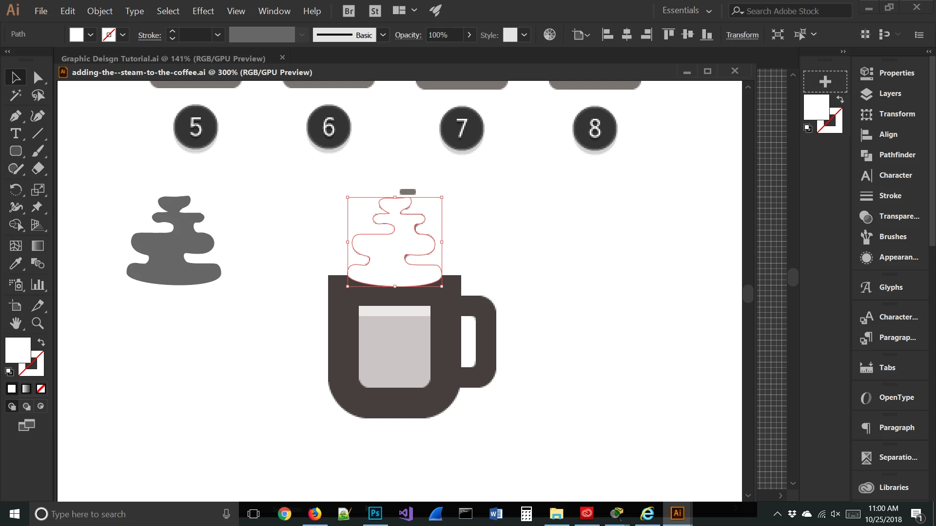 I created this path for the steam on my coffee mug and I pasted it into my actual working file (pictured below)