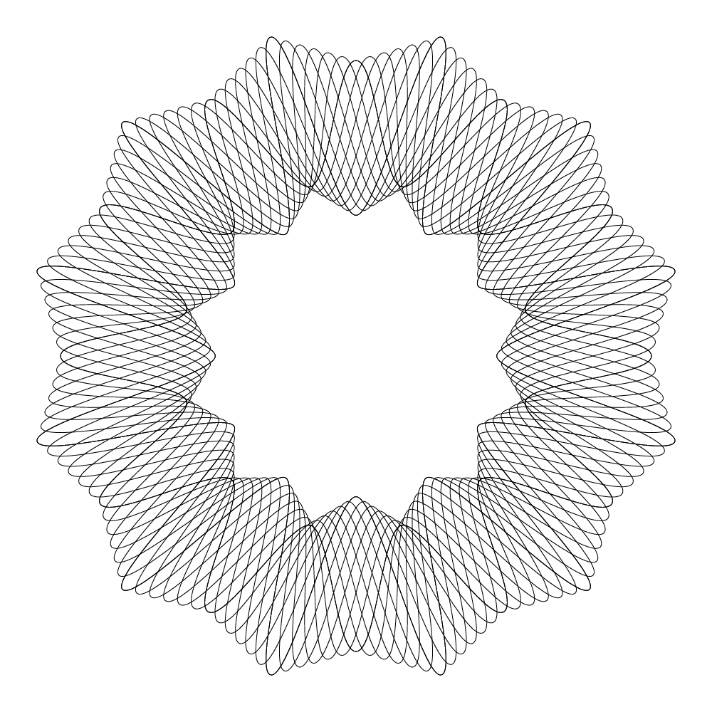 I am trying to recreate this spirograph in illustrator but i cannot seem to find the right steps and actions to build this particular one. It has a unique floral shape and loops through the shape. If anyone could help me that would be appreciated with what you did to achieve this spirograph. I've been at it for a while now.