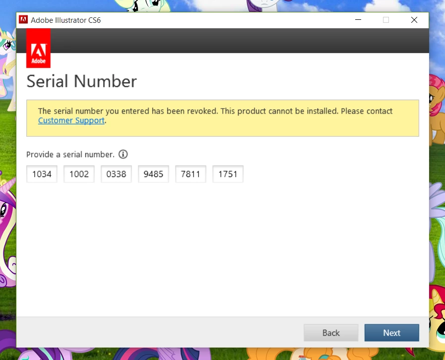 I bought adobe illustrator cs6 on 13th July 2017, and I've just tried to add it to my computer because I had to do a reformat recently and now it says this when I enter my code.