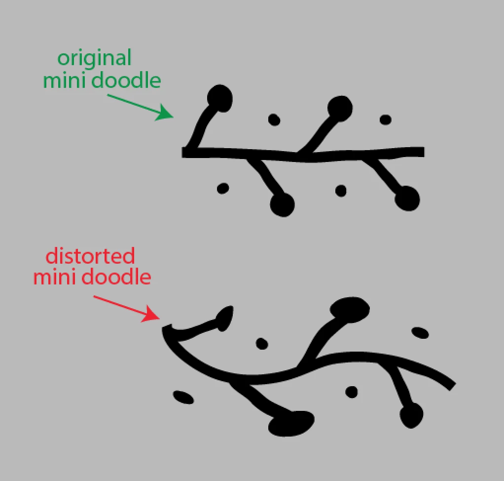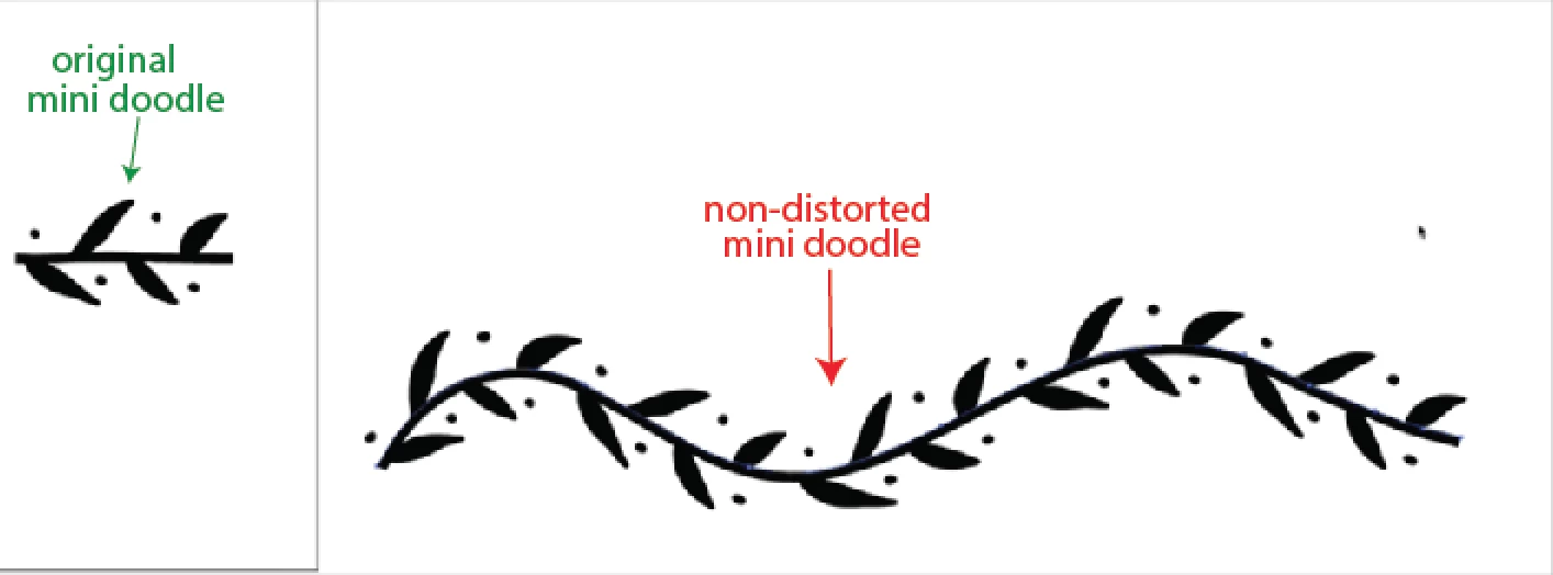 Once that option's been chosen, she uses the pencil tool to draw a curvy path and clicks her newly made pattern brush, and her result is the non-distorted mini doodle pictured below.