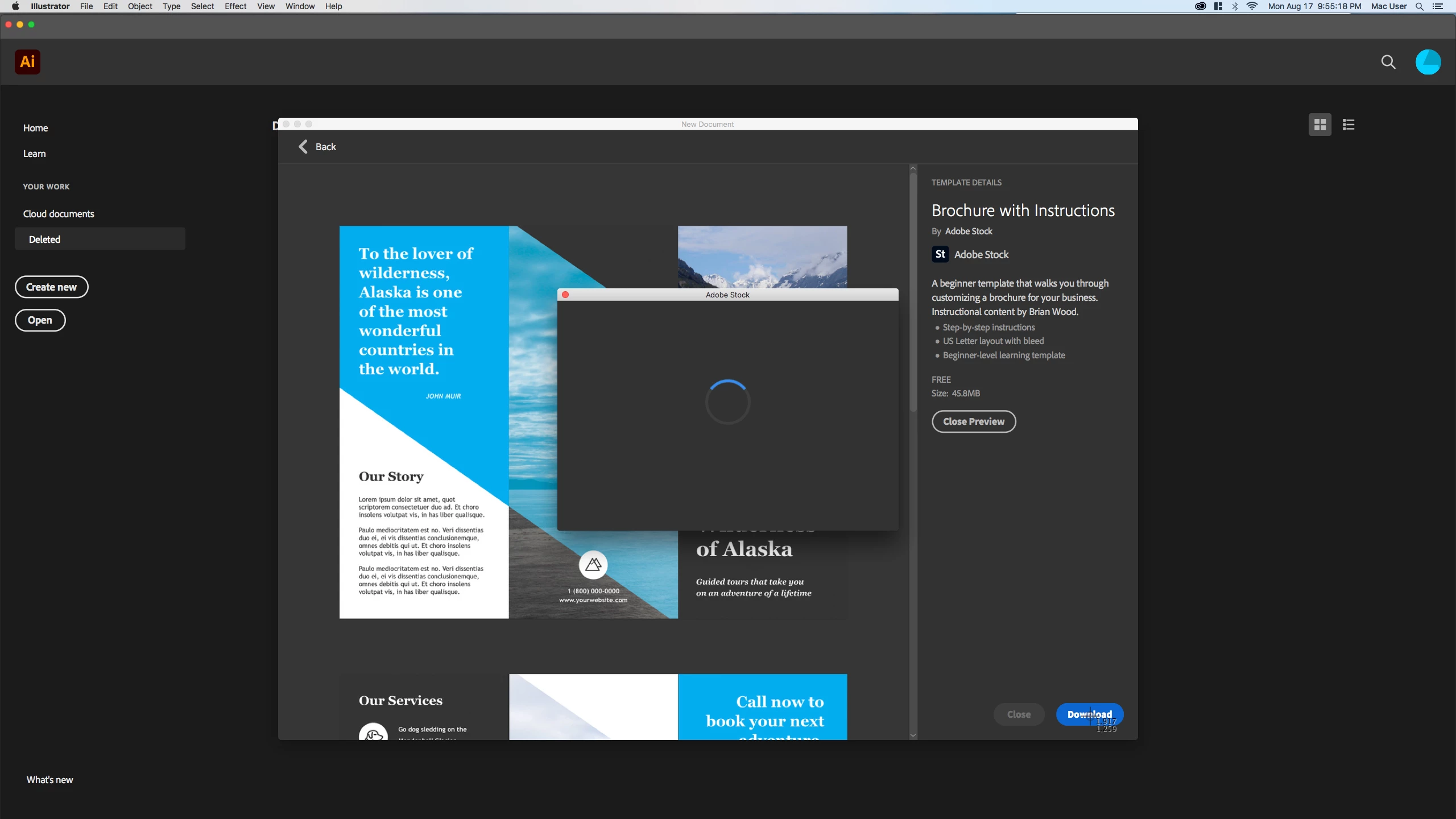 i am able to see a preview of any template.once i click download a pop up window displaying a turing circle shows up and never downloads.