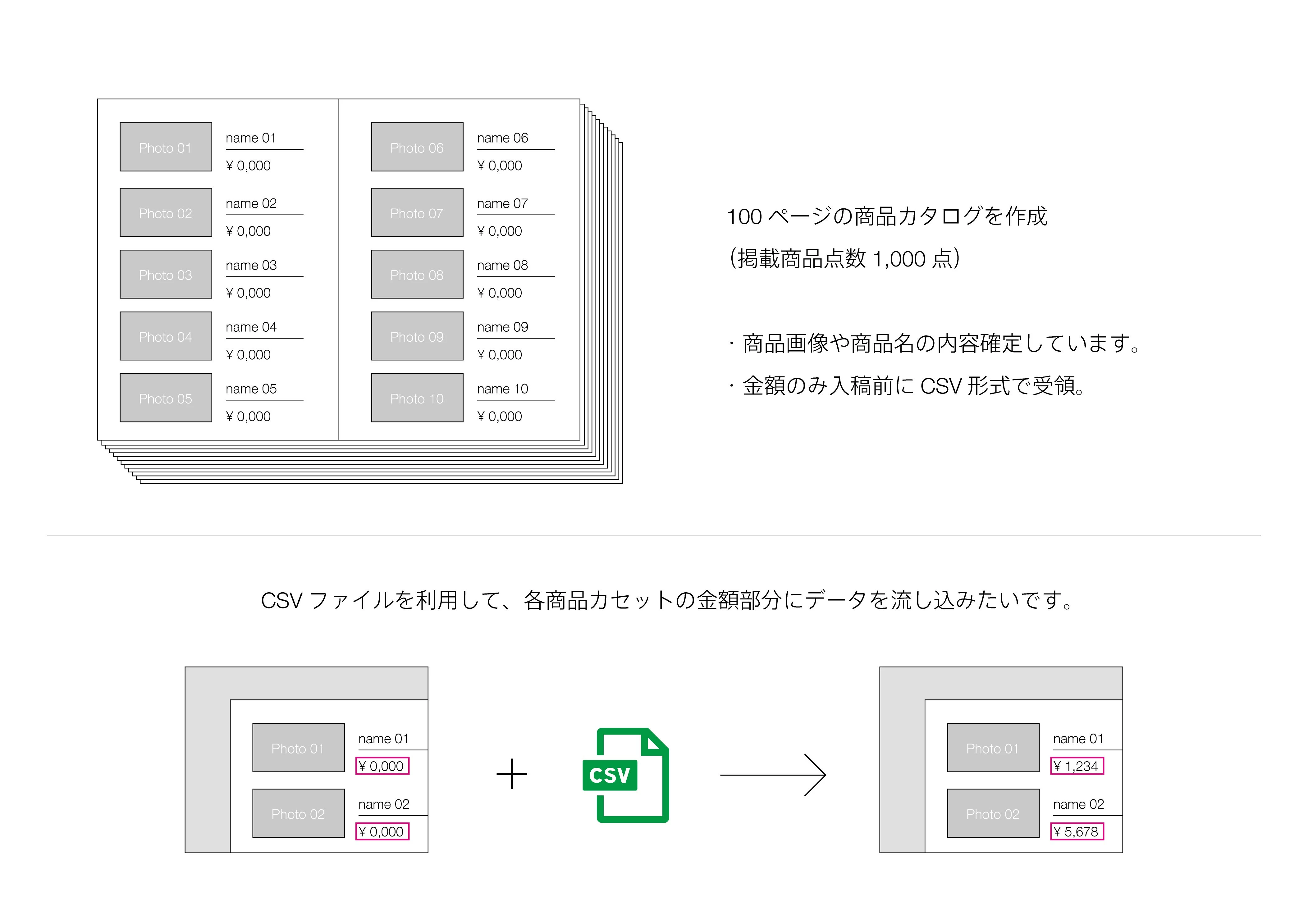 金額のみ入稿直前にCSVファイルで受領予定となります。