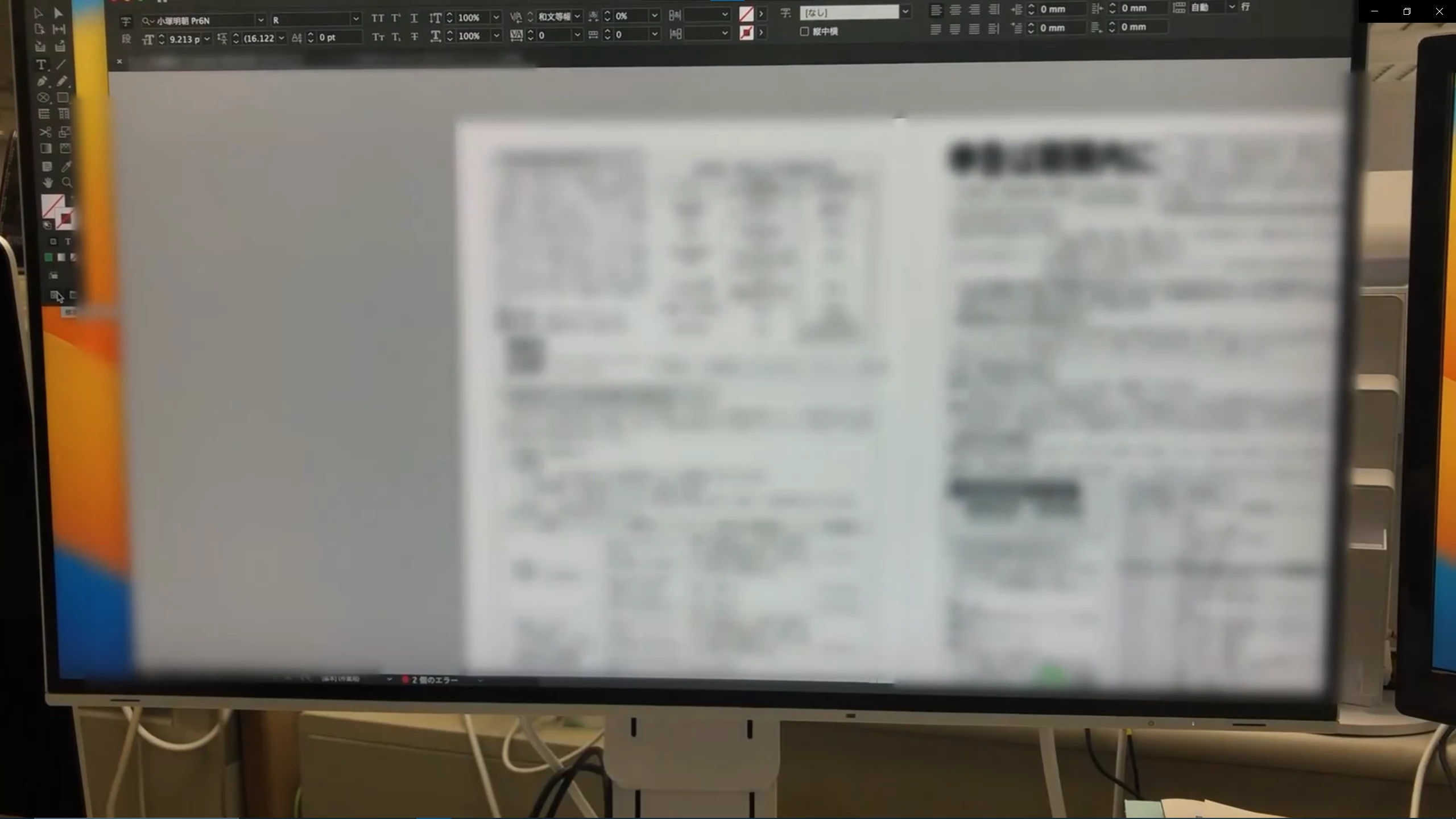 当社は会社の方針でオフライン環境で作業をしています。その環境下で作業をすると様々な画面表示の不具合が発生します。その一つのパターンとして参考のキャプチャ画面を添付しました。写真001の画面は、グラデーションのかかった図形が複数表れていますが、作成したわけではありません。謎に表示されています。プレビューモードに切り替えると本来作成した内容が表示されます。(写真002 →内容にはぼかしを入れています)写真003ではテキストボックスを移動させることでも正しい表示になります。(写真004)さらに、ネットに接続することでも瞬時に正しい表示に戻ります。ネットに接続したまま作業をすればよいのでしょうが、機密情報を扱う場合もあり現在は会社の方針でオフライン環境で作業をしなければなりません。あるときは画面が真っ白になったり、テキストの一部が欠けたりとパターンは色々あります。頻度は一日に数回発生します。OSやInDesignのアップデートを重ねるたびに症状は酷くなりつつあります。