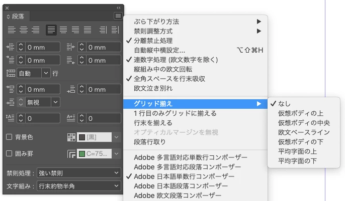 ・本文段落のグリッド揃え設定