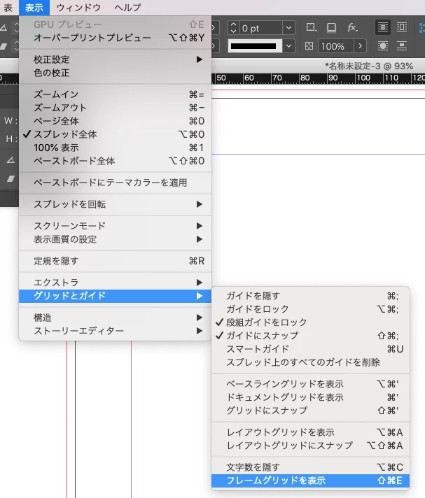フレームグリッドの設定はオブジェクトメニューから開くことができます。