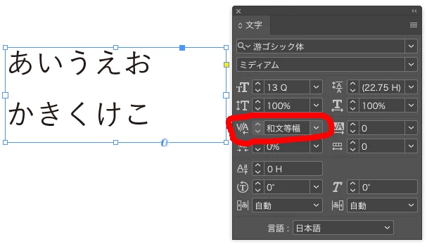 カギカッコも同様の事由ですが、段落パネルいちばん下の「文字組み」も絡む設定となるのであわせて確認しましょう。