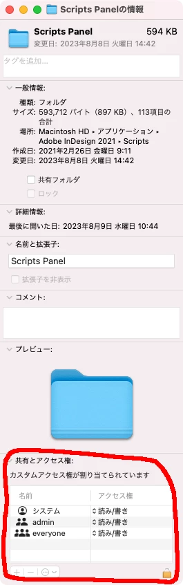 Finder上で Scripts Panel を開き、⌘ + i で情報ウィンドウを出して、