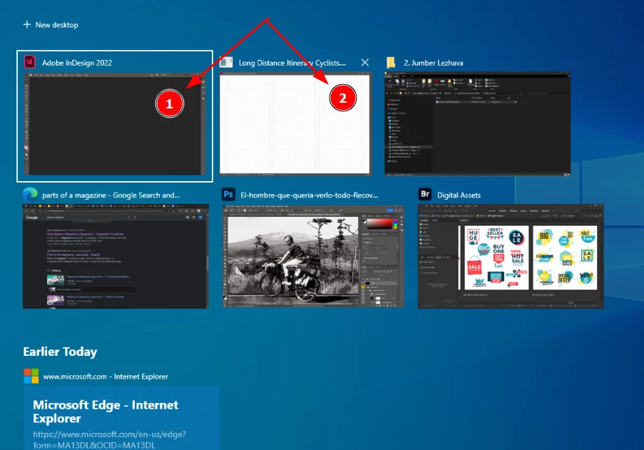 No matter which of the 2 task switcher icons I click, the full InDesign will get in focus, document + interface: