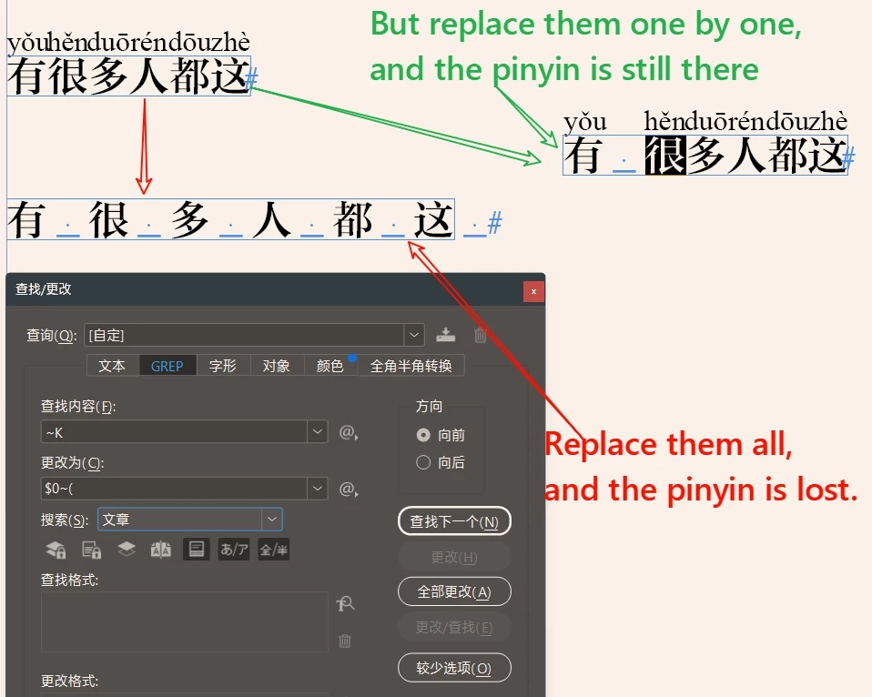 * @discussion https://community.adobe.com/t5/indesign-discussions/add-a-space-after-the-chinese-character-if-you-replace-it-all-once-the-pinyin-is-lost-how-to-solve/m-p/14765771