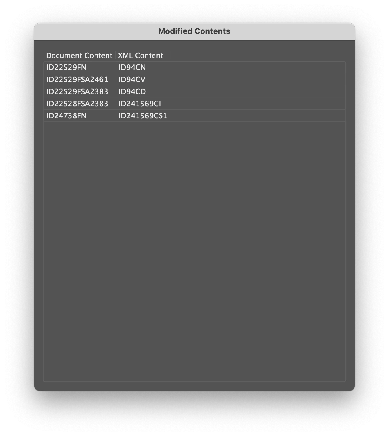 columnTitles: ['Document Content', 'XML Content']});