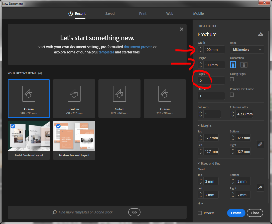 I need to design a landscape brochure. Front cover, back cover etc. So like a quare half fold. No seperate pages, we need it to be like one document. Everything I try to search for the recommended measurements adobe wants me to buy a template. Has anyone got measurements to hand for me?