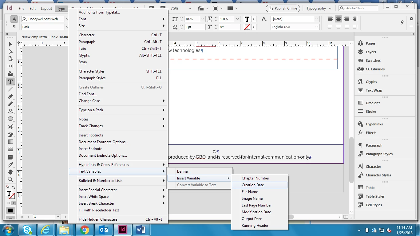 I am working on a document where I wish to insert the current date. I was exploring text variables. But I can't spot any option for inserting the current date.