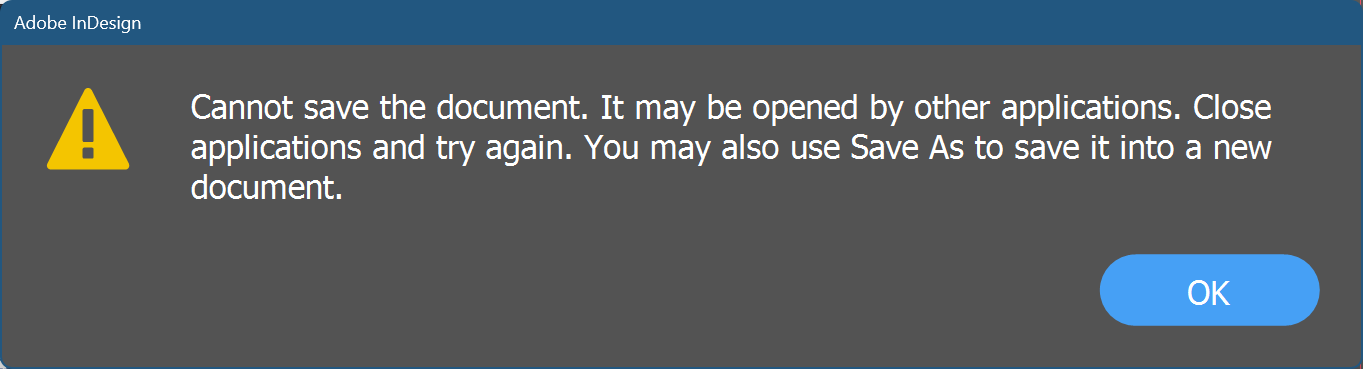 I understand what you say about the preview option in Windows file explorer and how it can often cause Adobe Acrobat to treat a file as being is use by another application. So I know to avoid that issue. Sometimes the Save error occurs without file explorer being open at all and I choose my document from the InDesign "Recent" list of existing documents.
