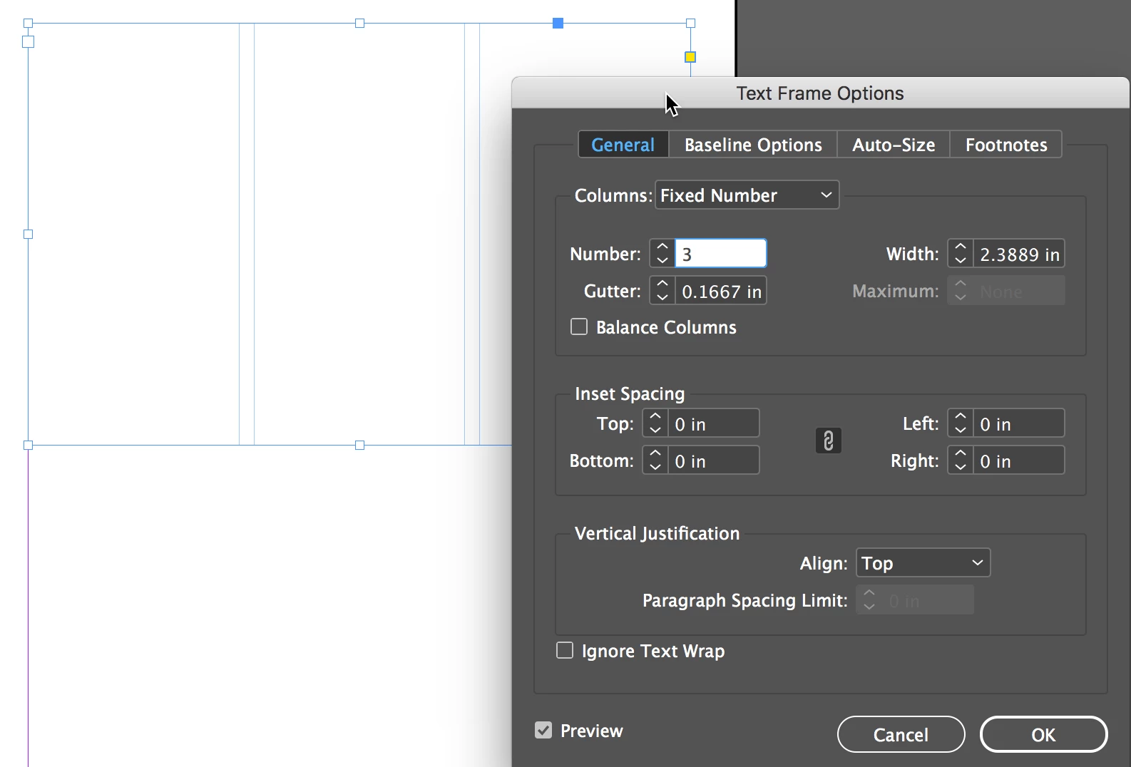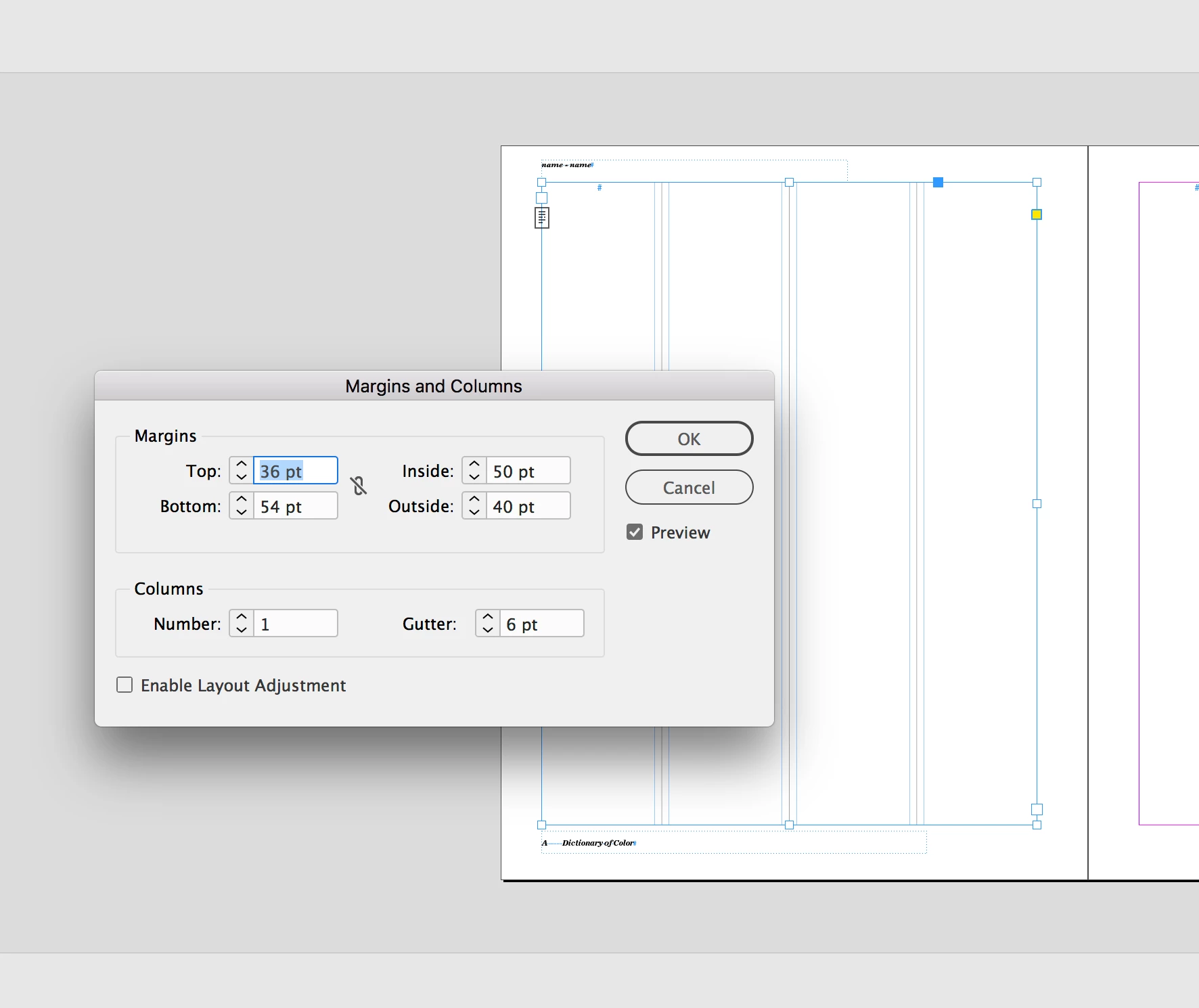 Under Document Setup, Primary Textframe is off.