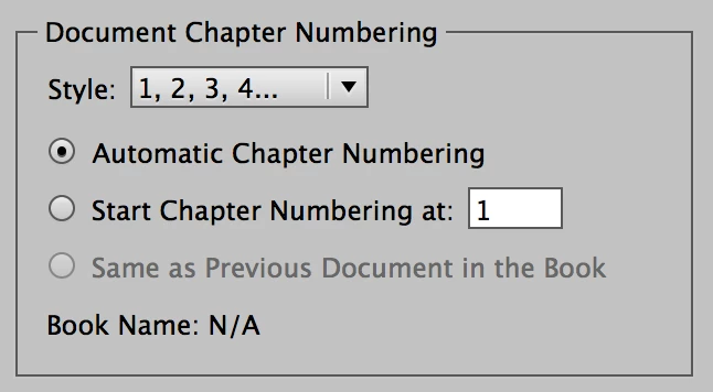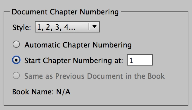The Document Chapter Numbering for Chapter_01 looks like this: Start at 1