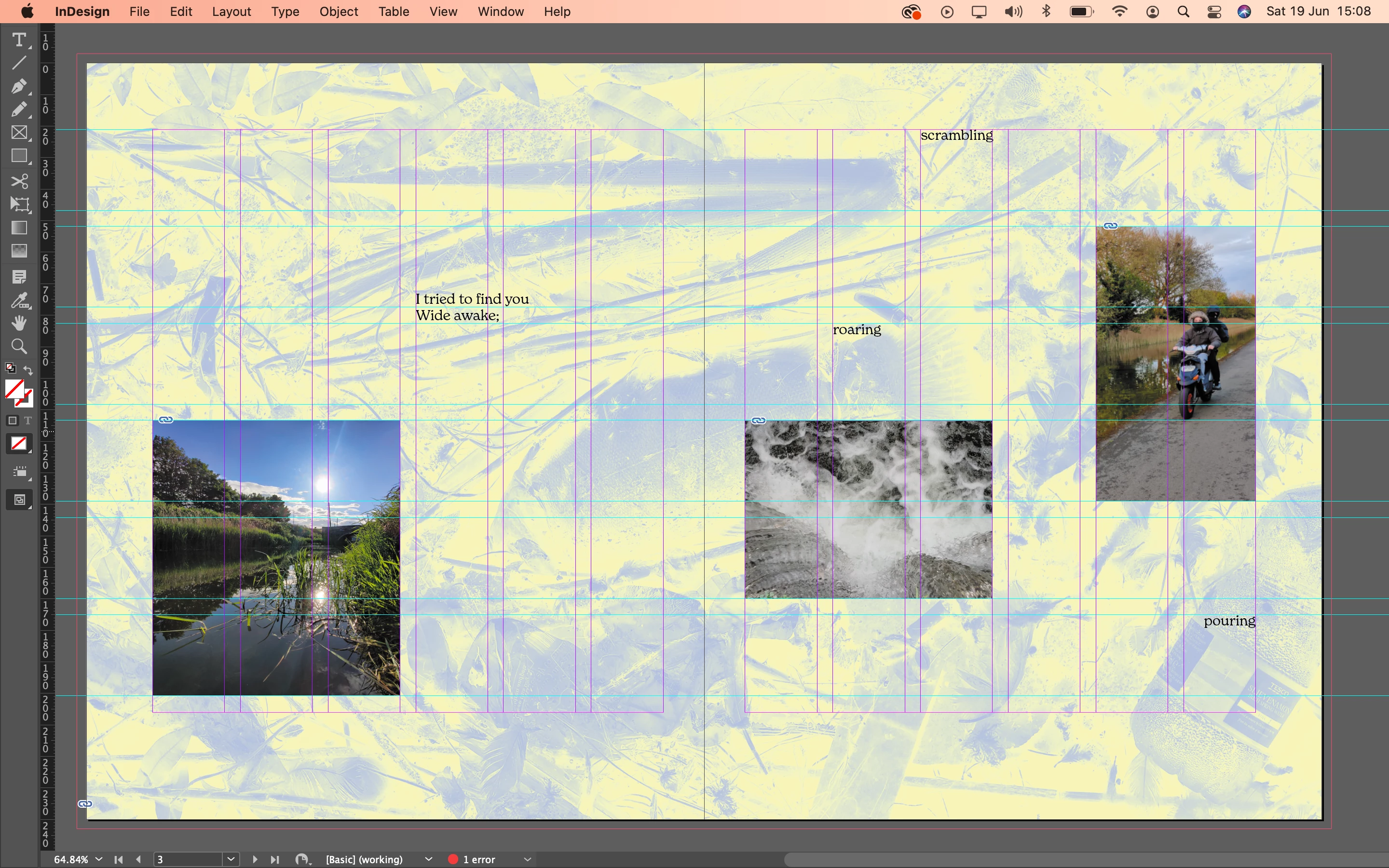 I know this isn't specific to Indesign but if anyone could please explain or advise me on how to make these decisions it'd be much appreciated! Images of my work in progress attached.